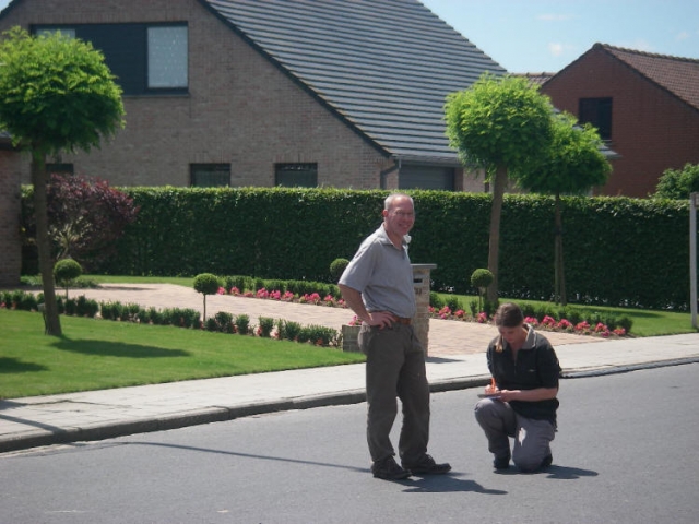 Iedereen herkent natuurlijk de inmiddels al 66-jarige Nesten uit Kuurne die een deel spreuken met tekeningen ter beschikking had gesteld van Eric of het kokje van restaurant ’t Gemeentehuis. Nesten genoot samen met Patrick Tamsin en diens echtgenote Inge Lefere uit Nieuwkerke-Heuvelland van de gezellige drukte die markt en koersen met zich meebrengen. De echtelingen baten de zaak voor jeugdverblijf met de mooie naam De Bosgeus uit, en blijkbaar kennen zij de tekenaar Nesten al jaren. Nesten had geen tijd meer gehad om zich thuis om te kleden, omdat hij in de namiddag een muurschilderij had geplaatst bij een gerenommeerd restauranthouder in Reninge.