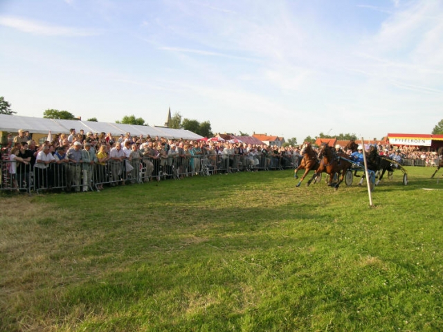 Vorige maandag kon er echt wel weer op de koppen gelopen worden te Krombeke; al vanaf 13 uur kwamen er heel veel mensen naar de markt voor paarden en pony’s onder een echt stralende zon. Tijdens de paardenkoersen op de weide zag men zo het publiek maar toestromen, en met 6 grote prijzen en de finale naast de speciale koers voor Belgische Boerenpaarden en de Steeple van Krombeke, kregen ze echt wel sport van de bovenste plank. En toen zakte die massa af naar het dorpscentrum waar men echt niet meer kon roeren of keren om te genieten van sublieme optredens van K’s Double Track, en misschien nog meer van Strawberry Jam dat door oud en jong en groot en klein gesmaakt werd. Nog tot de vroege uurtjes kon gewoon geen vin verroerd worden in het centrum van dorp, waar iedereen toch graag minstens één maal per jaar naartoe komt. De weergoden waren Krombeke tijdens het kermisweekend bijzonder goed gezind, maar het kan gewoon niet anders dan dat zoveel mensen gewoon op kermismaandag naar Krombeke willen.